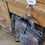 In Zuid-Amerika zeggen ze dat je geld uit je tas wegloopt als je ‘m op de grond zet. Is dat waar? We weten het niet zeker, maar waarom zou je het risico nemen? Neem liever je Tassentafelhanger (of tafeltassenhanger, daar wil ik vanaf zijn). Dat is een schijfje, iets groter en steviger dan een 2 euro muntstuk. Om het schijfje heen zit heel handig een opvouwbare haak gekruld. Met een magneetje blijft ie vast zitten zodat hij je voering niet kapot trekt. Onderop het schijfje zit een rubberen antisliplaagje. Draai de tassenhaak open, leg het schijfje plat op tafel met de haak naar onderen. Hang je tas eraan. Klaar. Het ziet eruit alsof dat helemaal niet kan, zo’n bungelende damestas aan een haakje, maar natuurkundigen verzekeren me dat het een kwestie is van balans tussen zwaartekracht en ophangpunt. In elk geval werkt het. Je tas hangt vlakbij je, terwijl jij gezellig zit te beppen.
