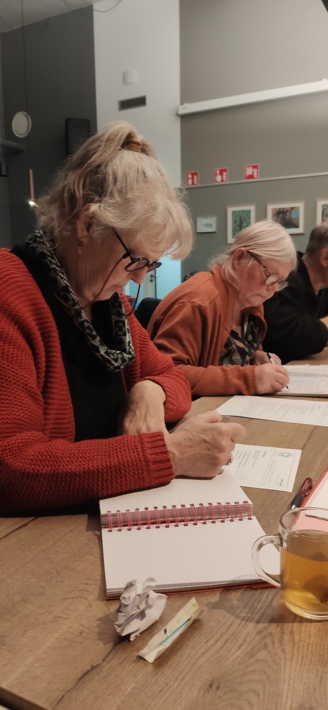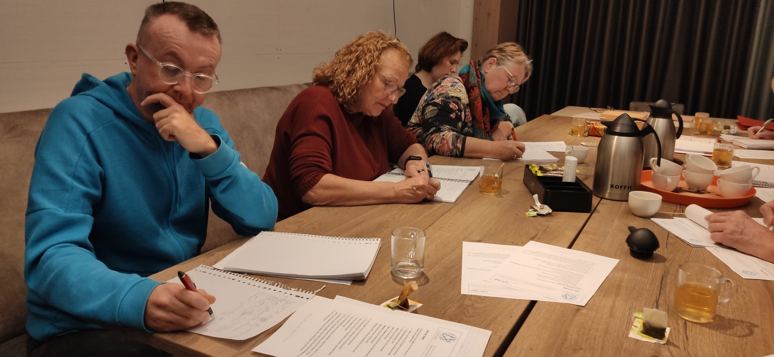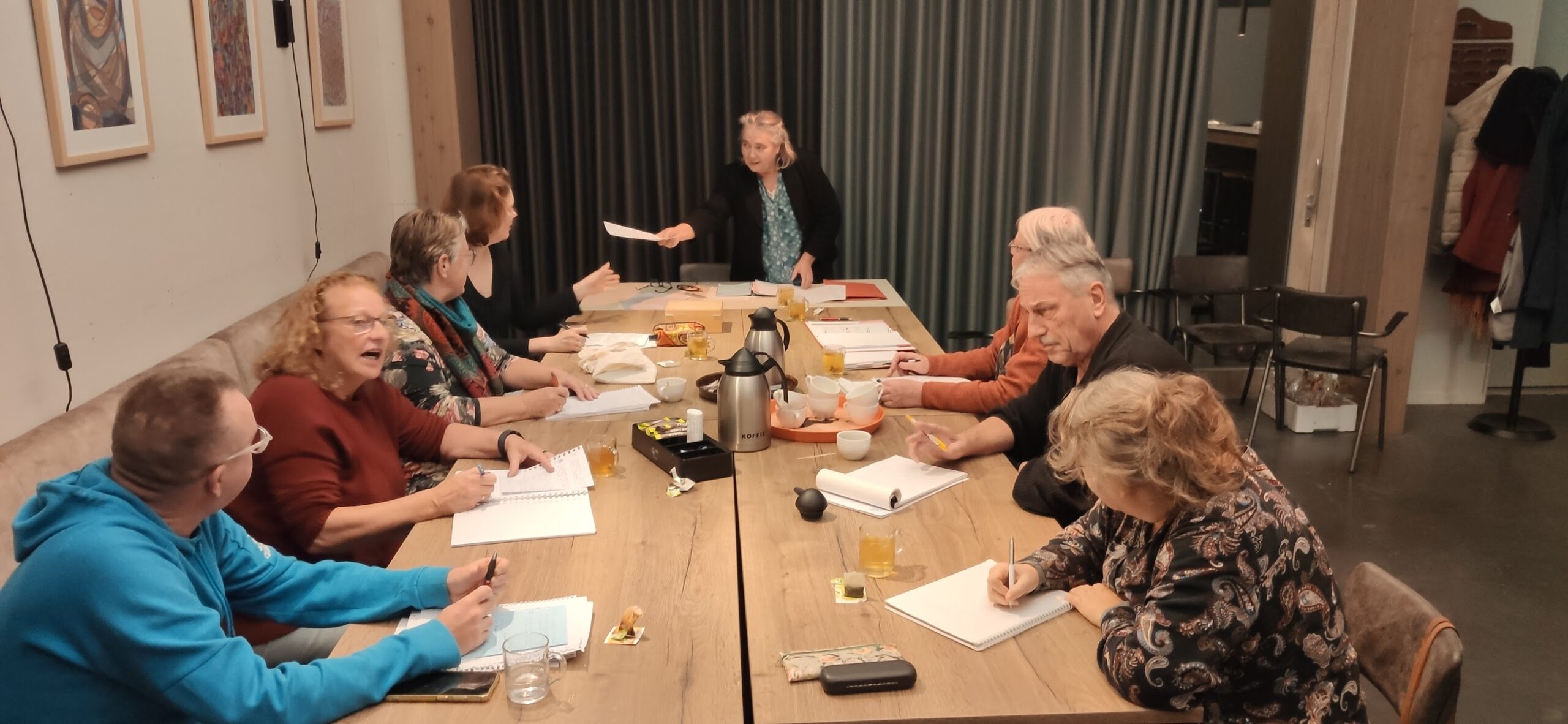 - 0- Elke bijeenkomst start met een vrolijke schrijfoefening met opbouwend commentaar, tips en trucs.
